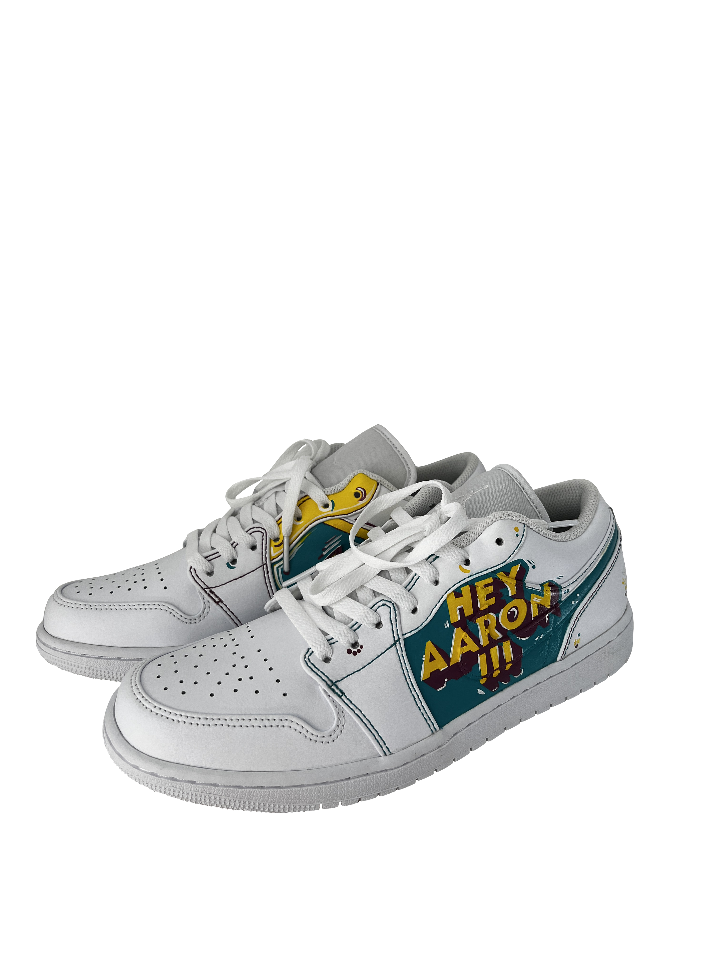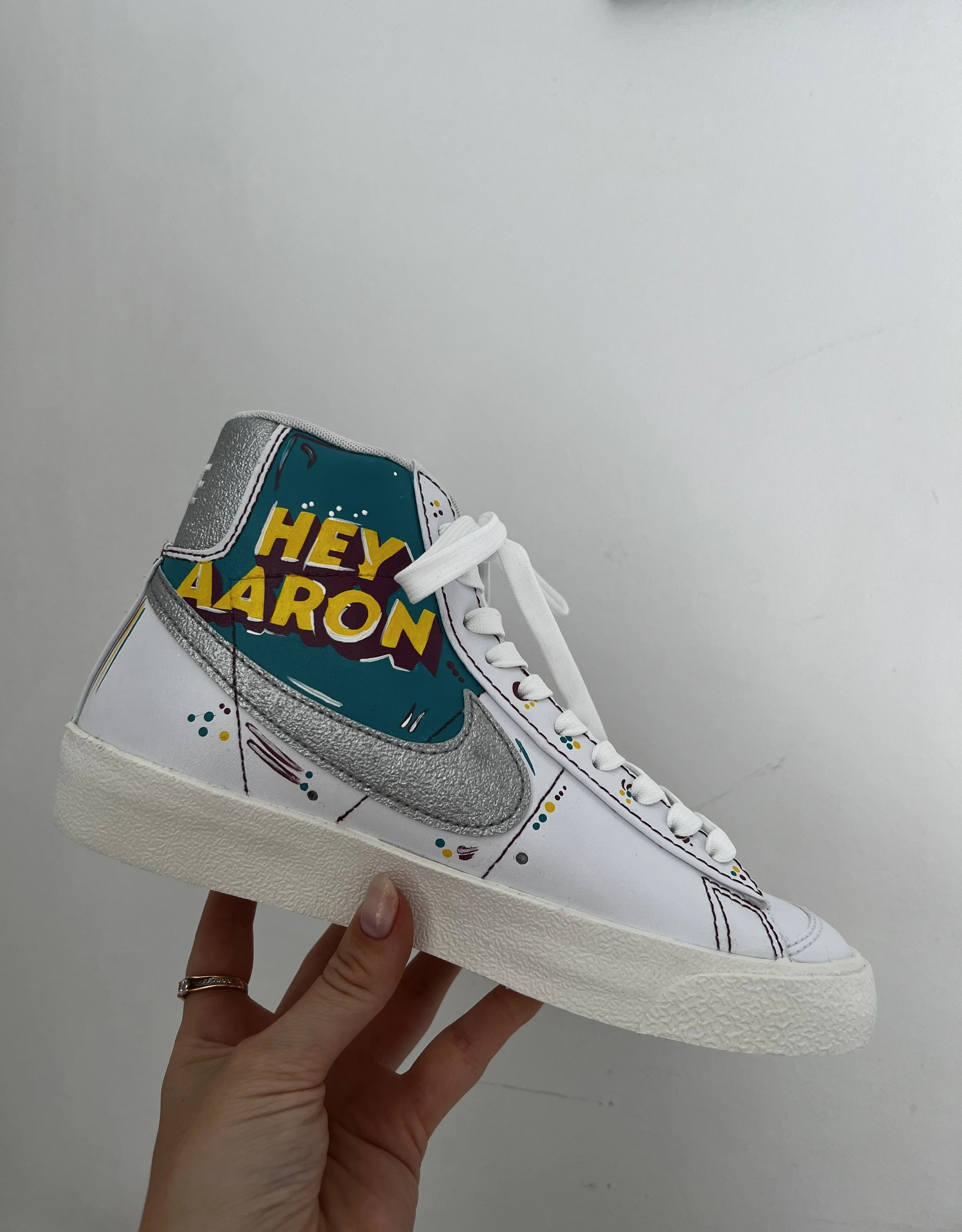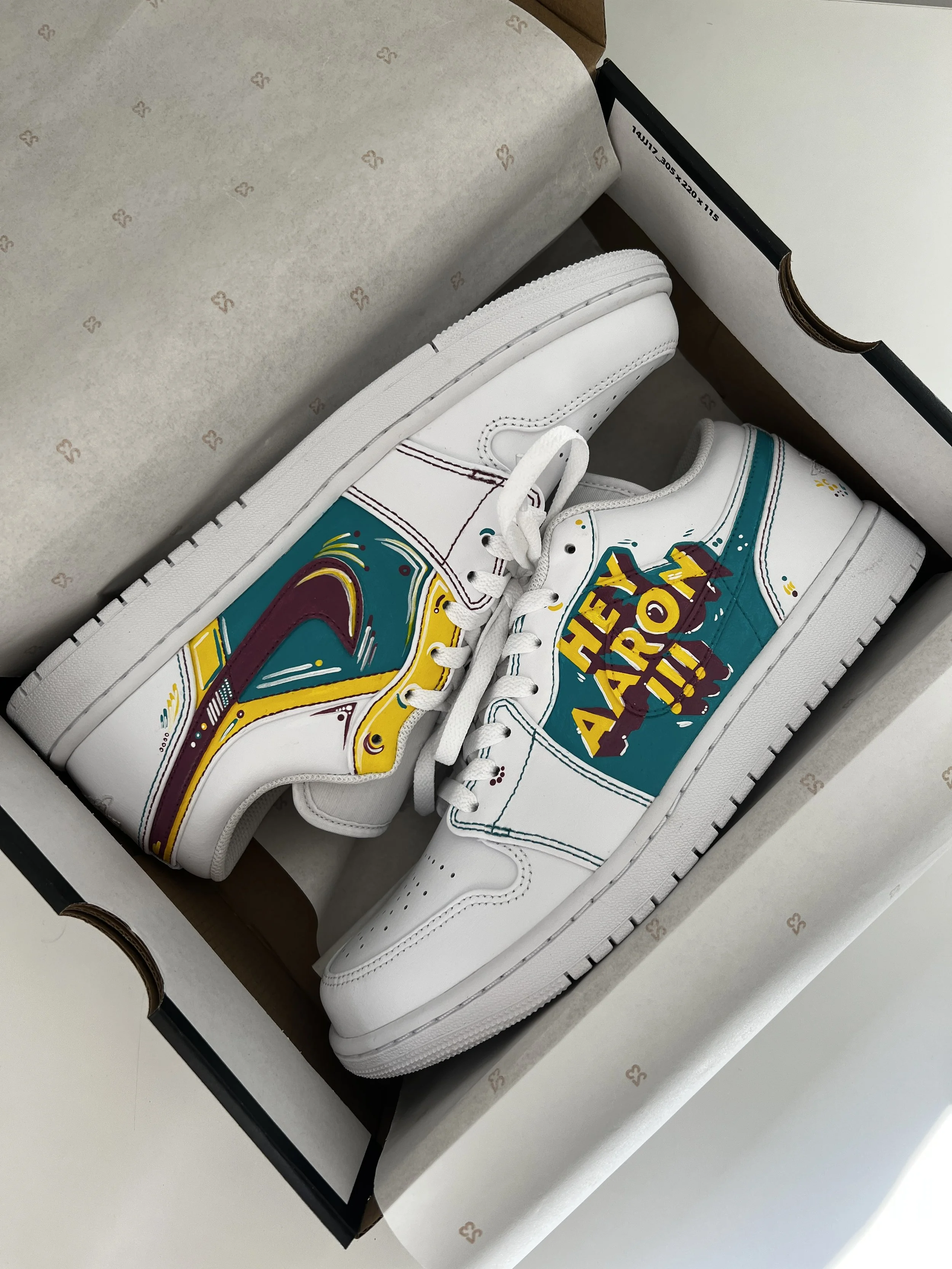 He ordered two custom pieces - one for him and one for his wife. They got super cool partner sneakers based on his personal brand “HeyAaron”.